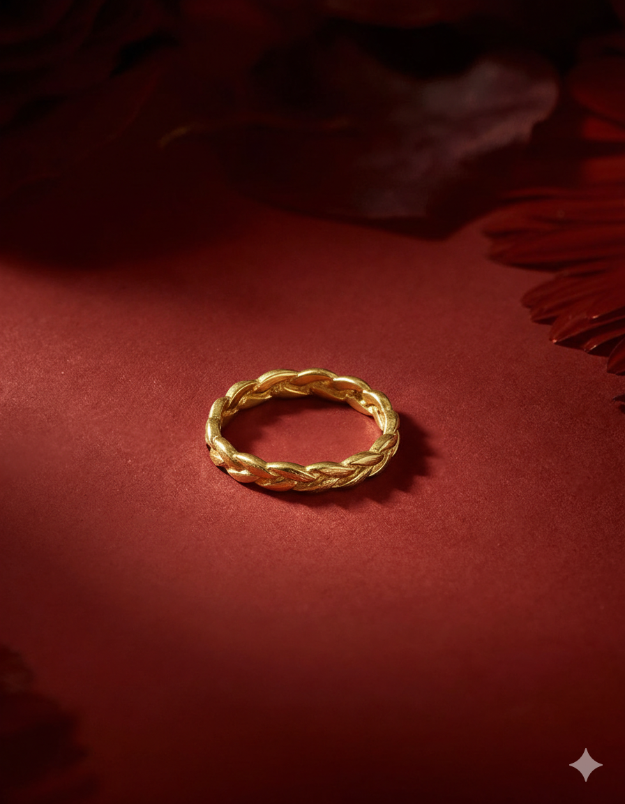 「雙環交織」18K黃金天然鑽石戒指 | “Double Band Intertwine” 18K Yellow Gold Natural Diamond Ring