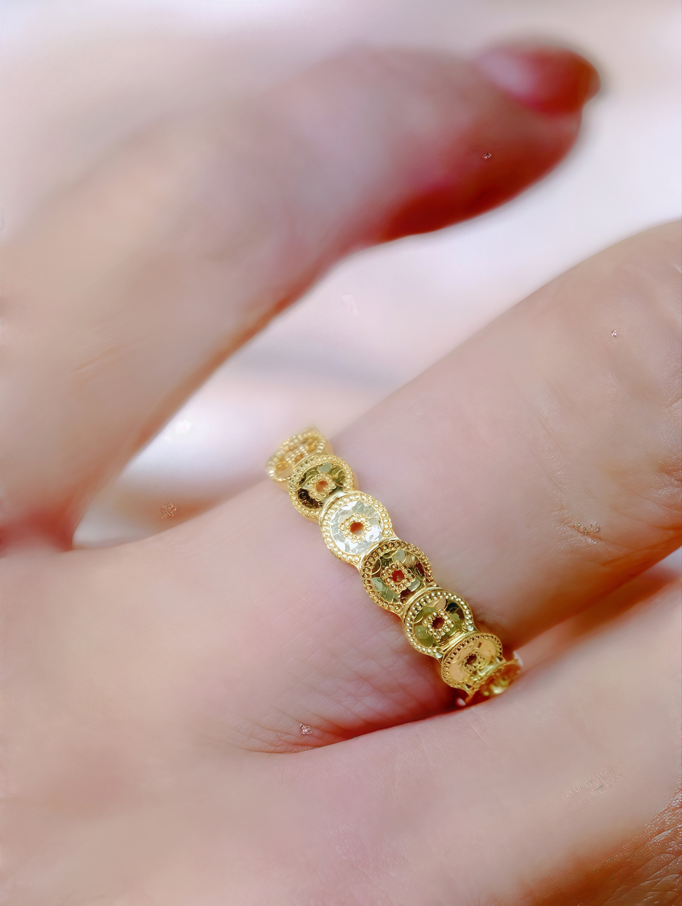 999.9蜂巢足金硬金戒指是一款靈感源自大自然蜂巢結構的精緻珠寶,由純度999.9的足金精心打造。獨特的蜂巢幾何紋理,象徵著勤勞與繁榮,採用高品質的硬金打造,耐磨而時尚,是日常佩戴或送禮的絕佳選擇。無論是搭配休閒裝扮還是出席正式場合,這款戒指都能為您增添幾分優雅。