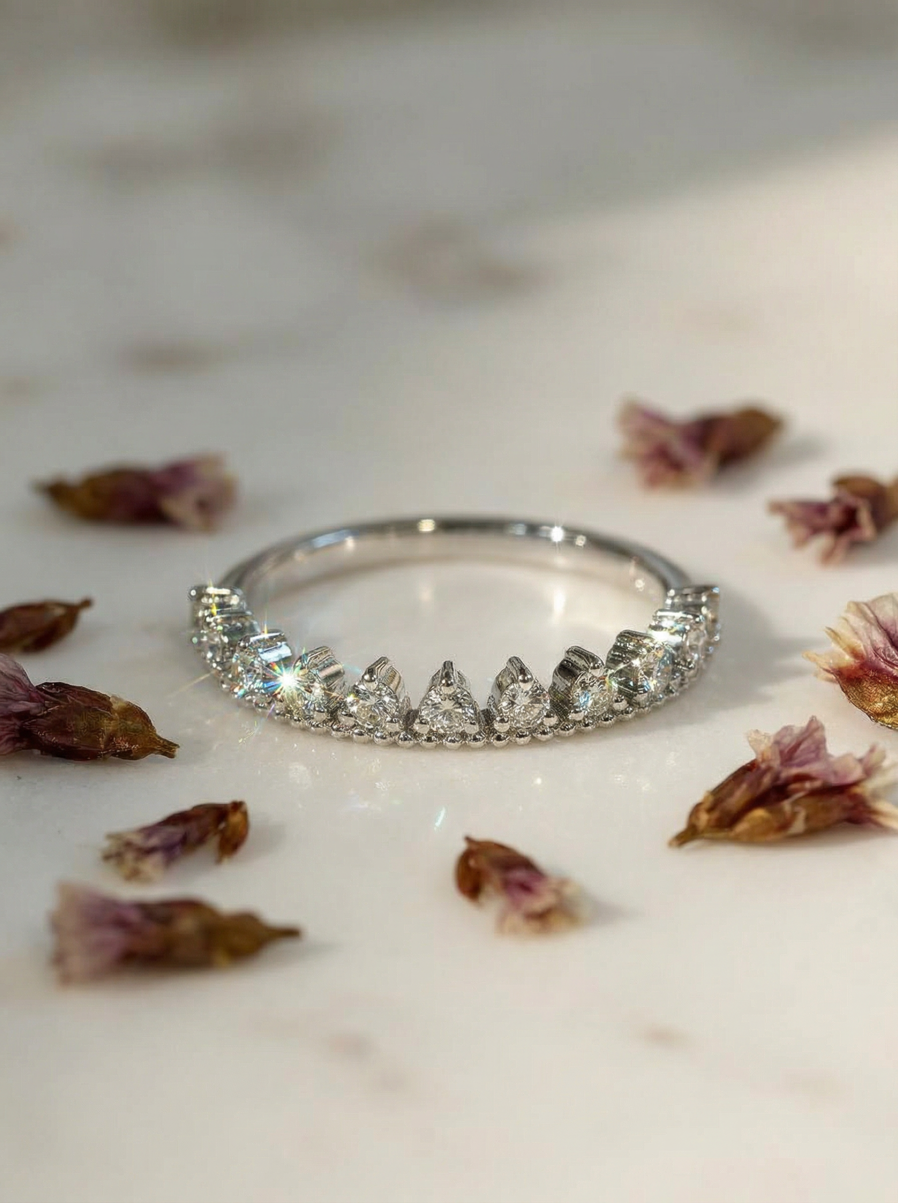 | 戒指設計 | 皇冠形半圈鑽石戒指(Crown-style Half-Eternity Band) |